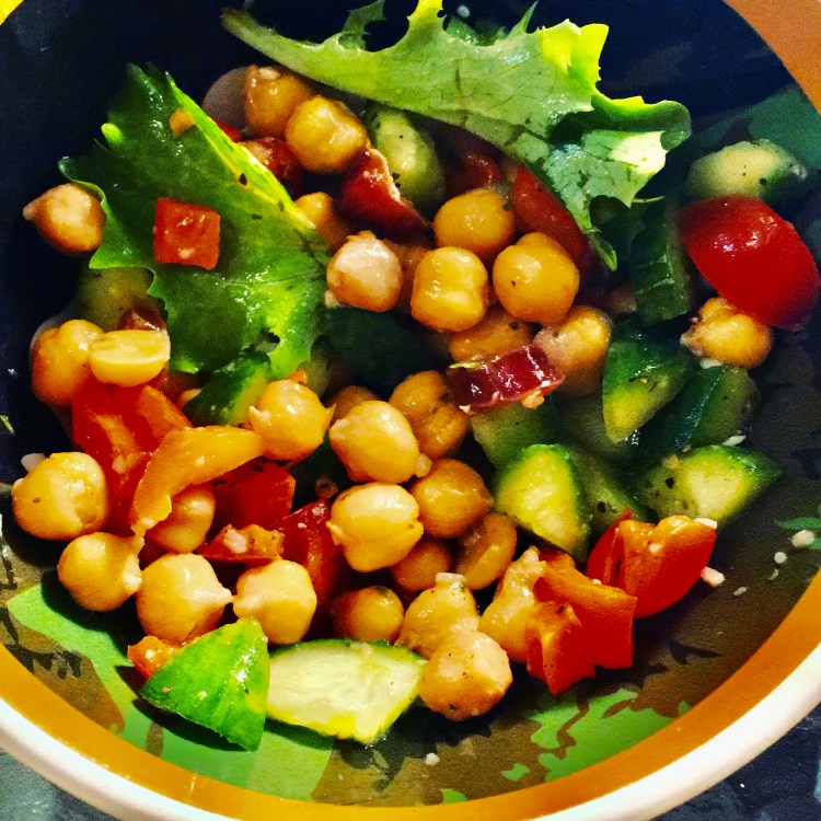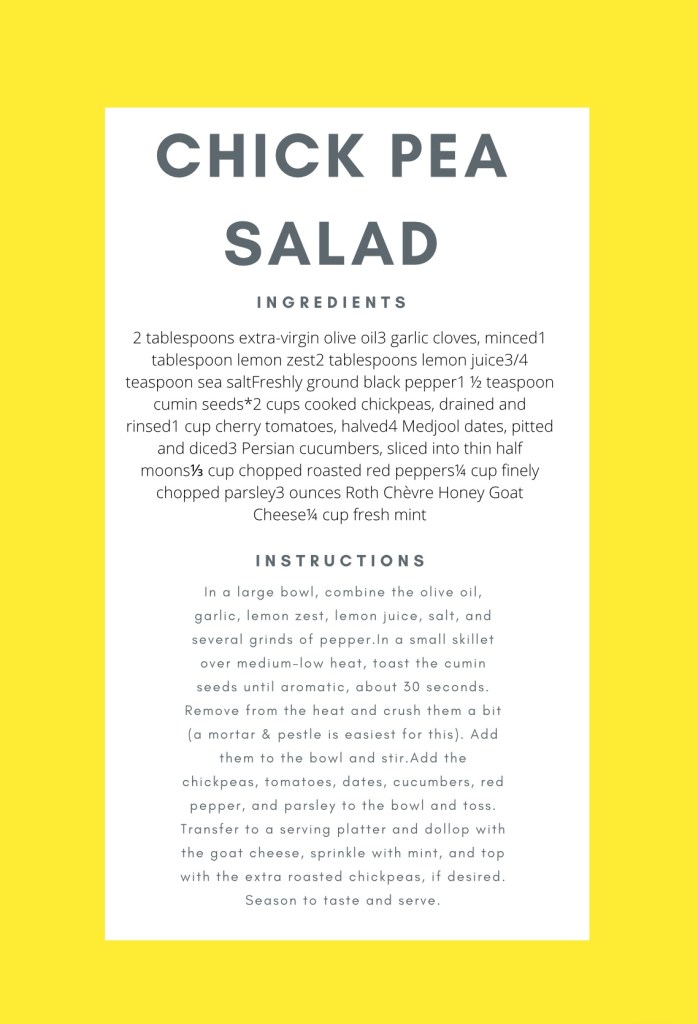 This Chick Peas salad has been my go to lunch lately, Its full of protein, from the chick peas, Its hardy enough to be a meal on its own or can be doubled as a healthy side dish, They Chick Peas hold up well in the fridge so they are great for meal prep.
