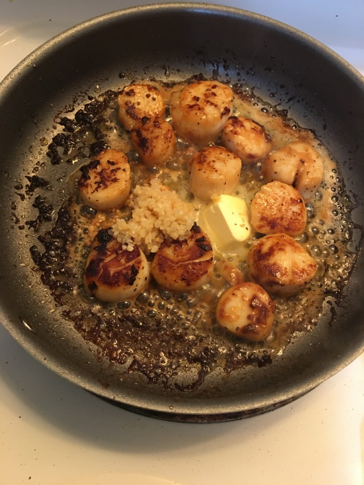 5th to complete add butter and minced garlic, sautĂ© until for a few more moments then serve. I serve these on a side of mashed cauliflower, Angel hair pasta or zucchini noodle’s.